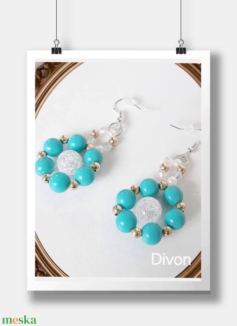 Virágmintás fülbevaló roppantott gyöngyös