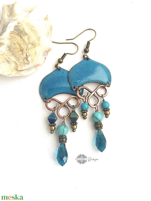 vörösréz, ékszerzománc, üveggyöngy, ásványgyöngy
