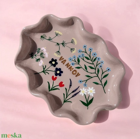 Kézzel festett vadvirág mintás ékszertartó tálka névvel vagy egyedi felirattal, tökéletes ajándék hölgyeknek
