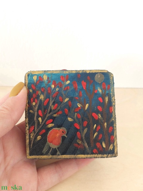 - Anyaga: fa, akrilfesték, lakk, fém akasztó