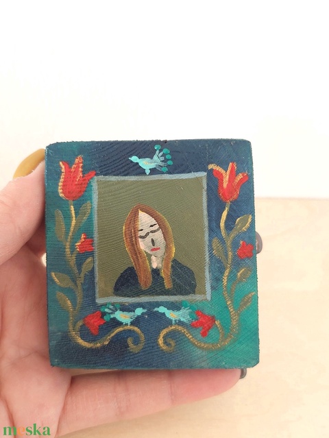 - Anyaga: fa, akrilfesték, lakk, fém akasztó
