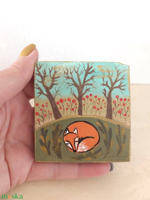 - Anyaga: fa, akrilfesték, lakk, fém akasztó