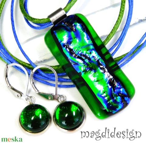 Smaragdzöld hullámzás üvegékszer nyaklánc, kapcsos zöld fülbevaló