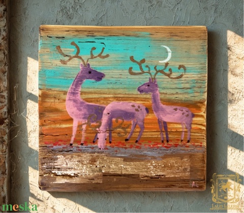 Aranyfolyó - Rusztikus Fatábla, Ajándék ötlet - Egyedi Falidísz, Szarvas, Őz