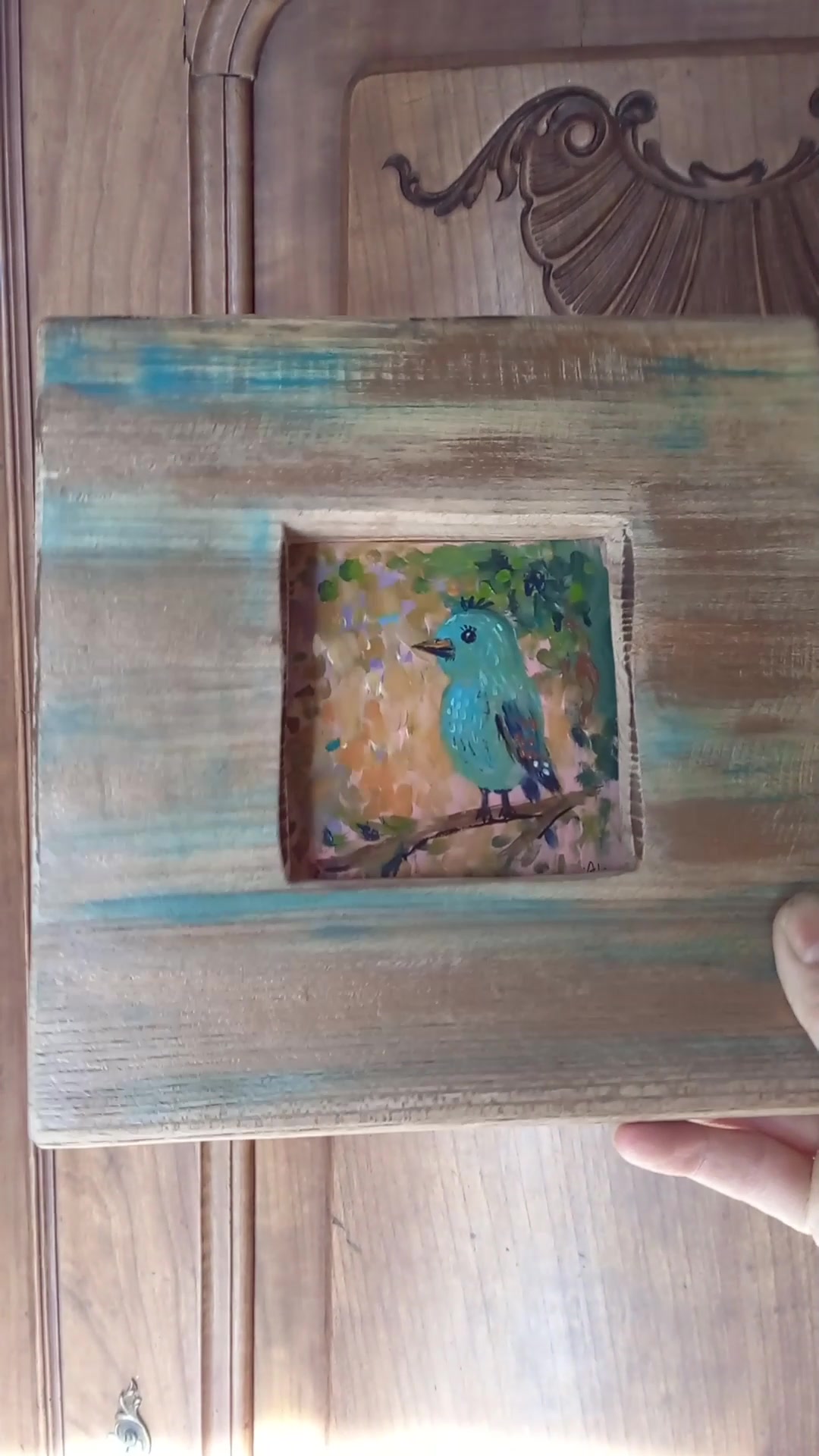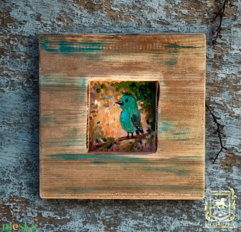 Pici kék madár - Rusztikus Fatábla, Ajándék ötlet - Egyedi Falidísz