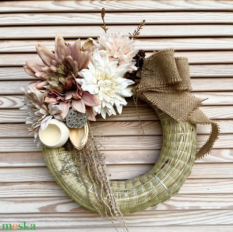 Gyékény pasztell ajtódísz, koszorú , 25-30 cm