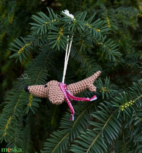 Horgolt tacskó karácsonyfadísz (vagy kulcstartó - feláras)