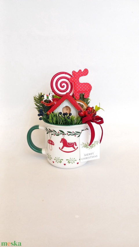 Karácsony Házikója Bögrében - Karácsonyi Asztaldísz/Télapós Asztaldísz/Téli Asztaldísz/Bögrés Asztaldísz