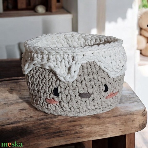 Még a tárolás is lehet jó játék, ha az aranyos horgolt mézi kosárba pakoltok. Kézzel és sok szeretettel készül, horgolás technikát alkalmazva, hogy tartósan díszíthesse a gyerekszobát.
