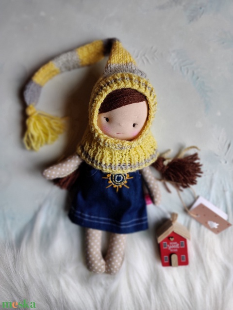 Waldorf jellegű baba, retró csősapkás rongybaba