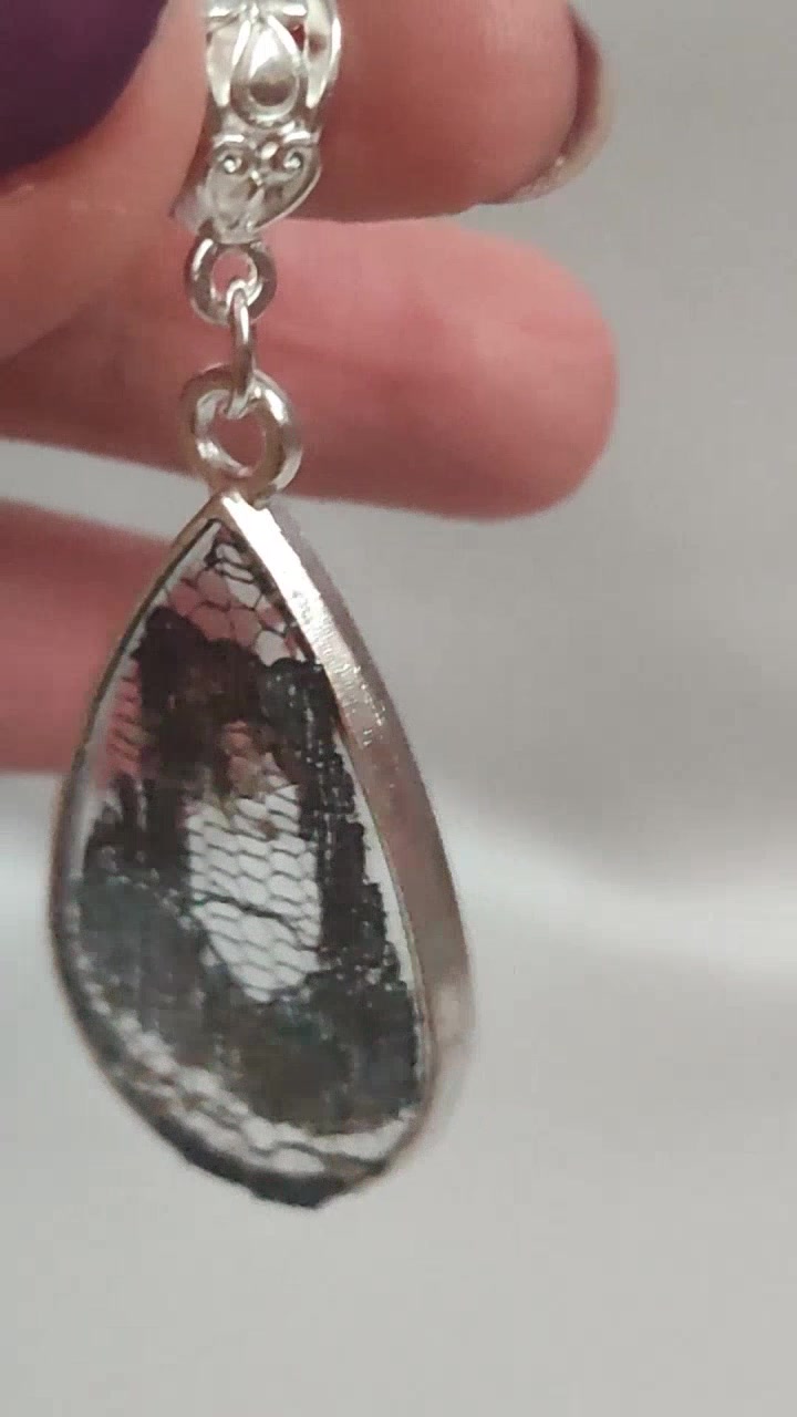 epoxi gyanta, préselt virág, csipke, cinkötvözet