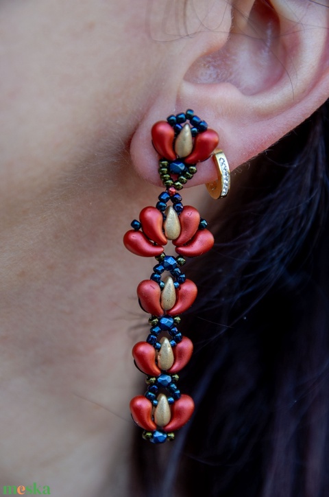- Anyaga: dropduo, cseh 3mm csiszolt gyöngy, miyuki kásagyöngy, toho kásagyöngy, miyuki cérna, fülbevaló alap, zoliduo