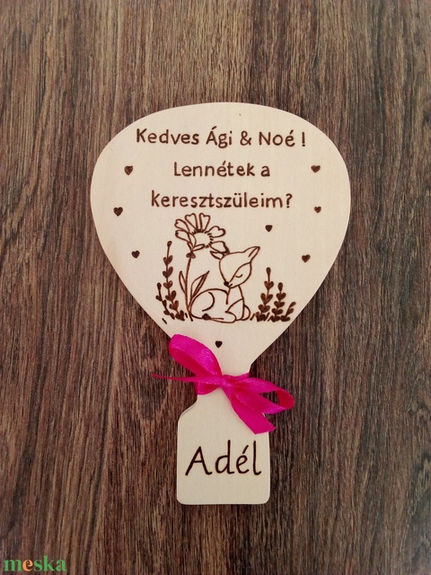 Keresztszülő felkérő táblácska , fakép, felirat, tábla - Hőlégballon