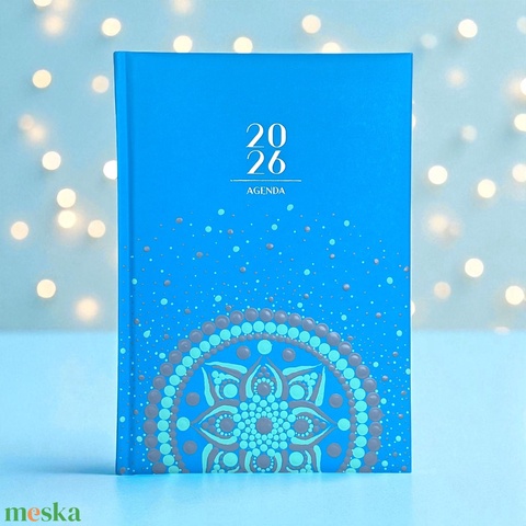 2026. évi aqua műbőr A/5 napi határidőnapló szatén fényű szürke és matt menta színű pontmandalával 21x14,8 cm