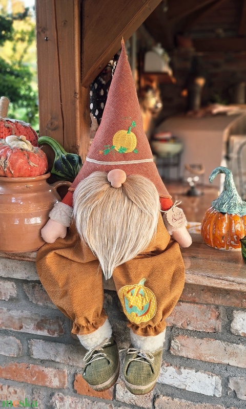 - Anyaga: pamutvászonkockás szövet, töltőanyag, kárpit textil, juta madzag, fából készült gomb, manószakáll