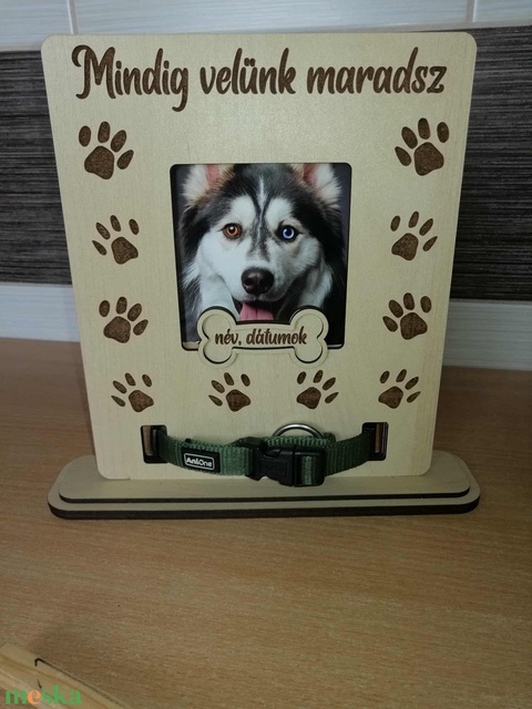 Elhúnyt kis kedvencednek állithatsz emléket ezzel a fotókerettel amely lézervágással és gravírozással készült. A fotó helyének mérete kompatibilis az egyik nagy drogéria láncban található fotó kidolgozó autómata kép méreteivel.