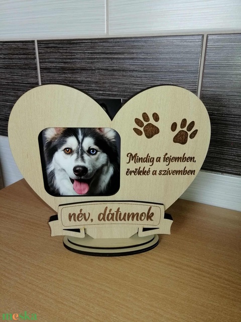 Elhúnyt kis kedvencednek állithatsz emléket ezzel a fotókerettel amely lézervágással és gravírozással készült. A fotó helyének mérete kompatibilis az egyik nagy drogéria láncban található fotó kidolgozó autómata kép méreteivel.