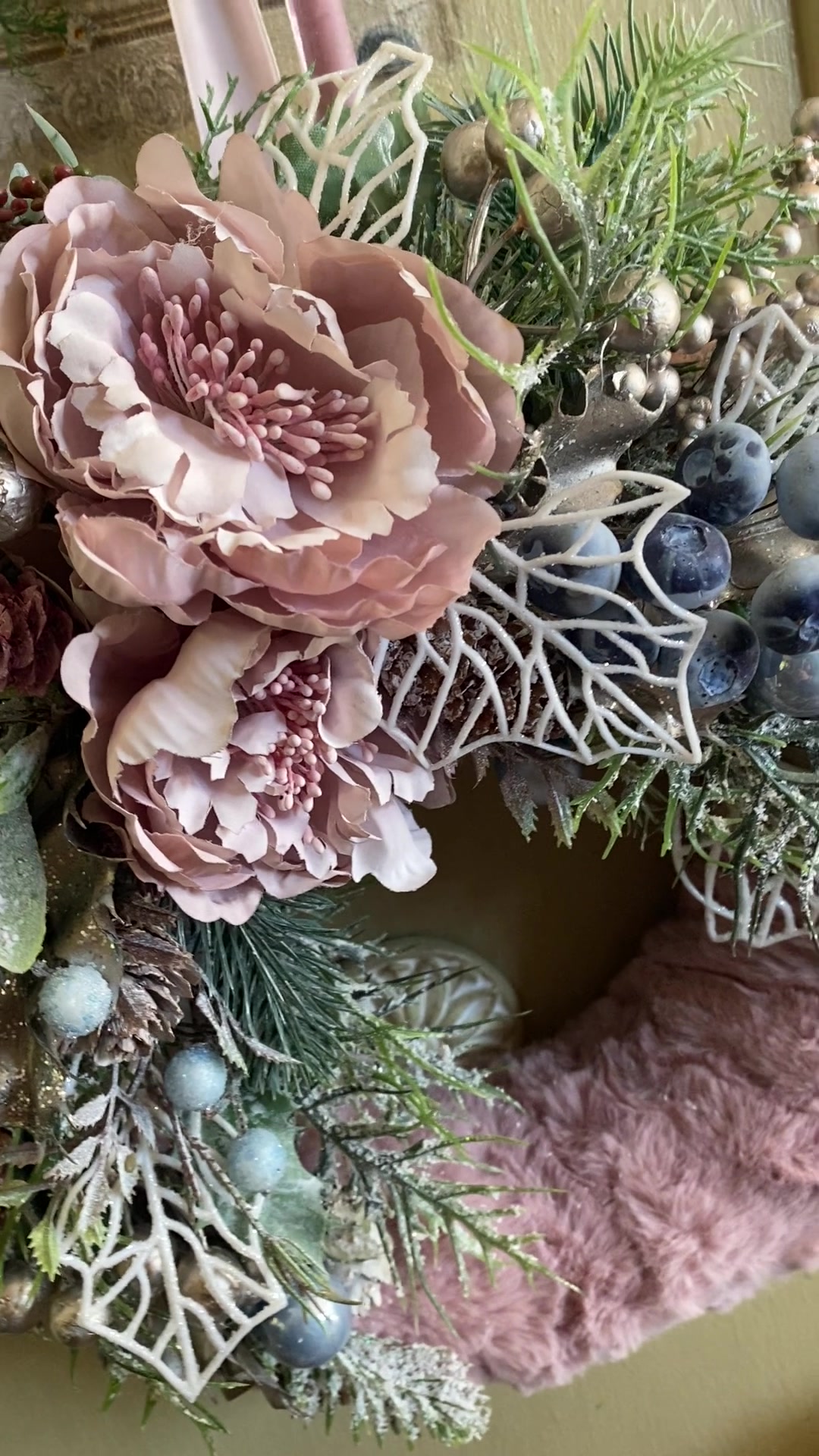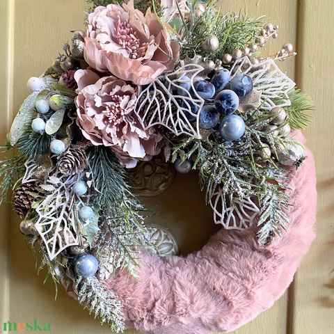 Púder rózsaszín karácsonyi kopogtató ajtódísz koszorú