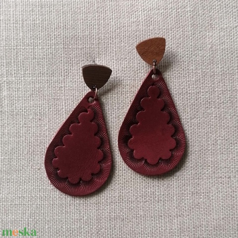 Csepp alakú nyomott mintás valódi bőr fülbevaló