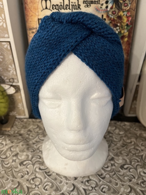Kötött Fülvédő- petrolkék 2 - ruha & divat - sál, sapka, kendő - fejpánt - Meska.hu