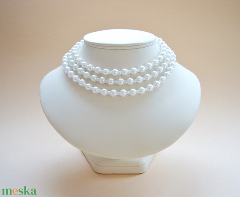 3 soros fehér kaláris - 8 mm-es üvegtekla és 3 mm-es plasztik gyöngyből