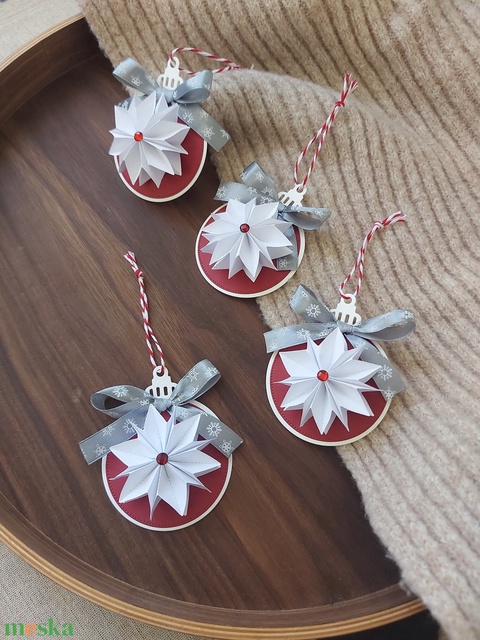 Karácsonyfadísz - piros papírgömb szett