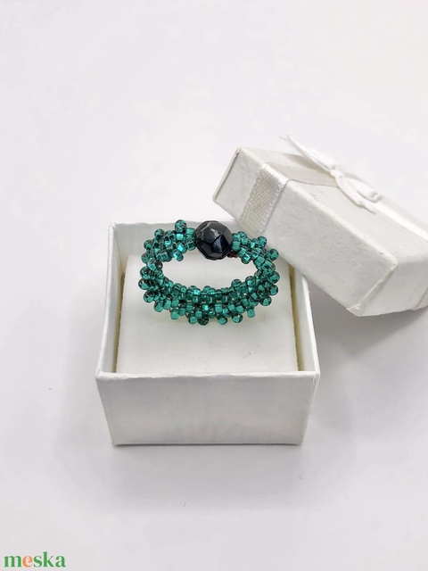 Andrassy Couture türkizzöld üveggyöngy gyűrű
