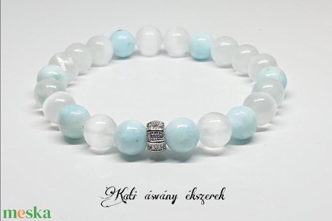 Ásvány neve, mérete: hemimorfit 8 db. 8 mm-es, szelenit 14 db. 8 mm-es, fehér színű ródiumos mikrostrassz