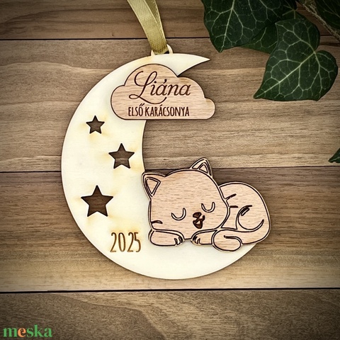 ÚJDONSÁG! Első karácsony - karácsonyfadísz cica figurával