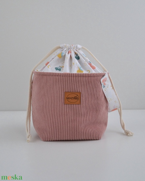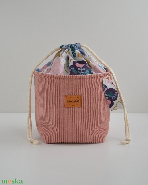 Közepes méretű behúzós projekt táska kézimunkához (rózsaszín kordbársony)