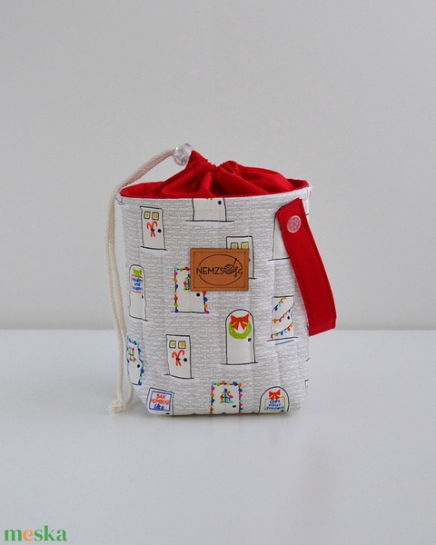 Kis méretű behúzós projekt táska kézimunkához (karácsonyi ajtós)