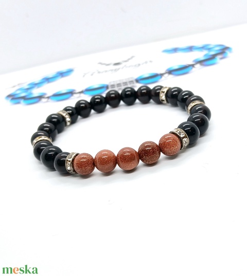 Elegáns, csillogó Goldfluss és Ónix női ásvány karkötő