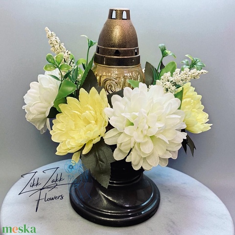 Krizantém Emlékmécses – Fehér és Halványsárga Virágokkal