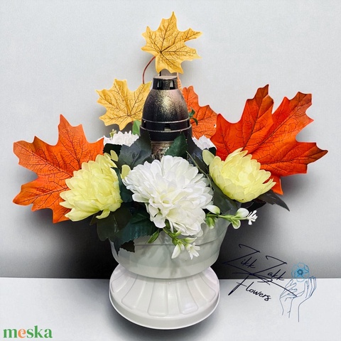 Őszi Krizantém Emlékmécses – Narancs Juharfalevelekkel