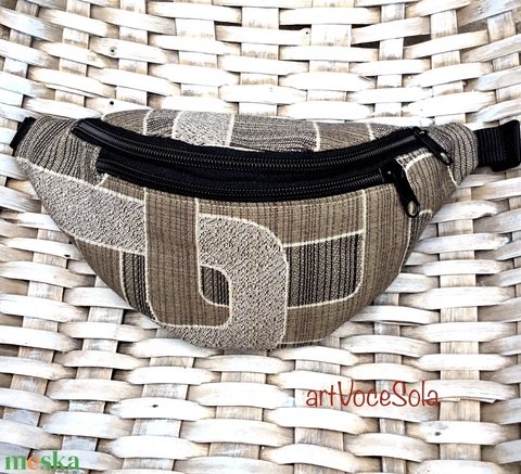 hevederpánt, műanyag csat, vászon bélés, dekorszövet, cipzár