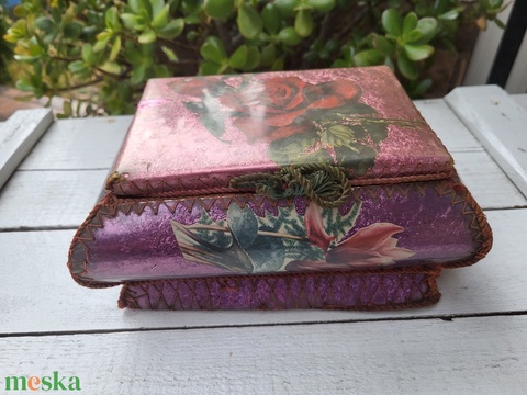 Kézzel varrott, antik képeslapdoboz