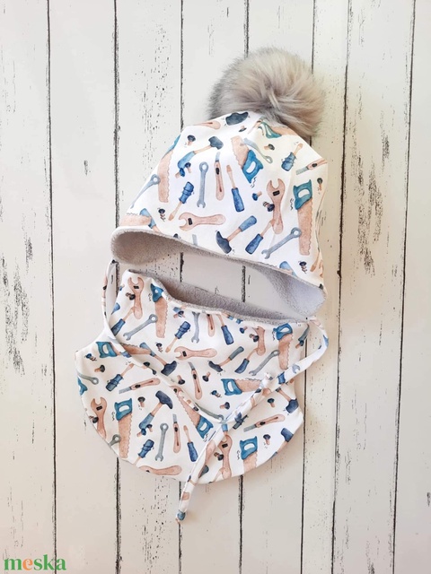 Szerszámos téli sapka-sál szett (50-52 cm)