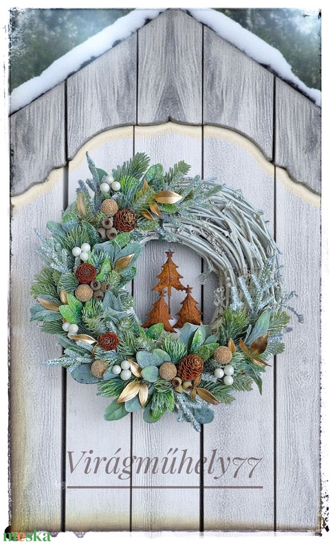 - Anyaga: vessző alap, műnövények, rozsdás hatású alumínium fenyők, termések