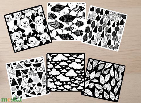 Az újszülöttek az első hónapokban még homályosan látják a világot, ezért különösen fontos, hogy olyan vizuális ingereket kapjanak, amelyek segítik a látás és az idegrendszer fejlődését. Kontrasztos babakártyáink fekete-fehér, erős mintázatokat (például állatokat, természetben megjelenő és geometriai formákat) ábrázolnak, amelyek felkeltik a baba figyelmét, ösztönzik a fókuszálást és támogatják a szenzoros képességek kialakulását.
