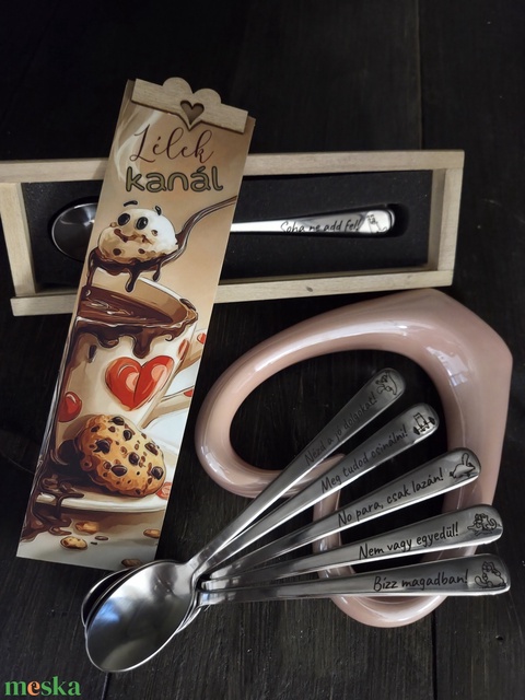 Lélek kanál gravírozott motivációs kiskanalak díszdobozban
