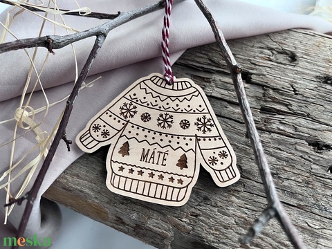 Csúnya pulcsis karácsonyfadísz - névre szóló