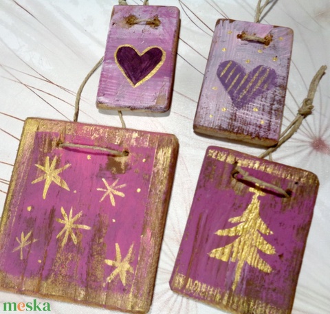 Rusztikus ajándékkísérő mix - Rusztikus Festett Fatábla - Falra akasztható - Ajándék ötlet - Szív, Rózsaszín, Arany