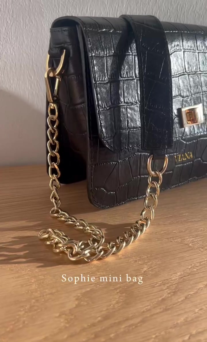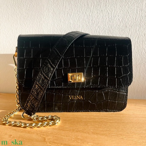 Fekete krokodil mintás bőrtáska - választható pánttal - monogram nyomással (opcionális)