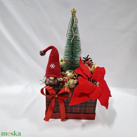 Mikulás , manóval, virágdoboz, asztaldísz, dekoráció, ajándék