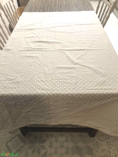 Rusztikus szürke, pöttyös vászon asztalterítő