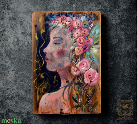 A belső kert - Rusztikus Festett Fatábla, Dekoráció, Ajándék, Portré, Rózsa, Tündér