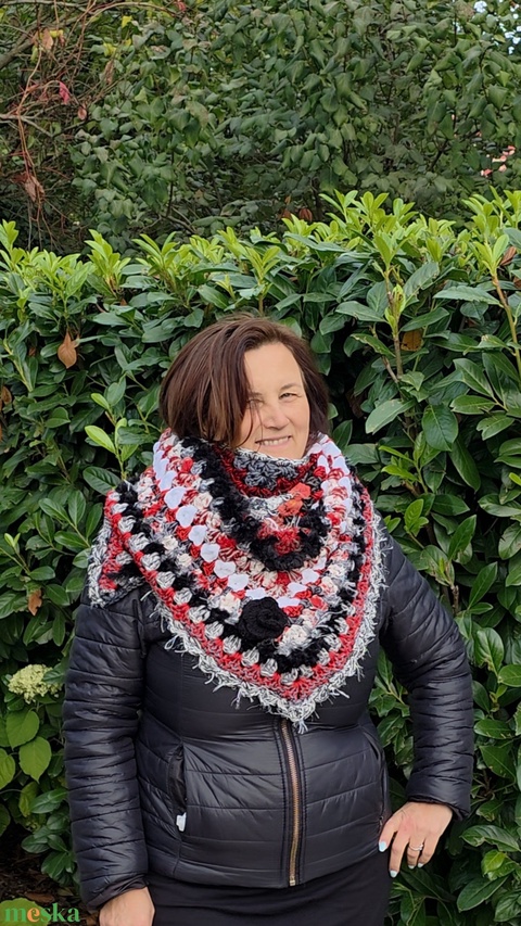 Tűzmesék - egyedi, kézzel horgolt kendő, rózsával