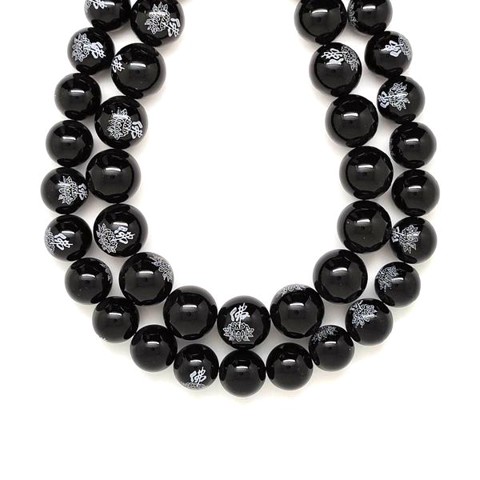 Onix golyó írásjellel 14mm– ékszerkészítő alapanyag (füzér)