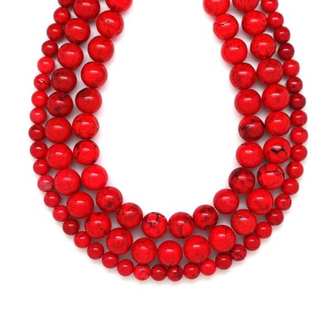 Magnezit piros golyó szinezett 10mm– ékszerkészítő alapanyag (füzér)