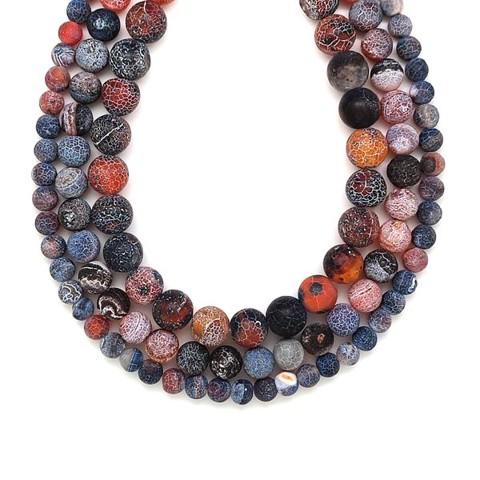 Achát hők szinezett matt narancs fekete golyó 10mm– ékszerkészítő alapanyag (füzér)